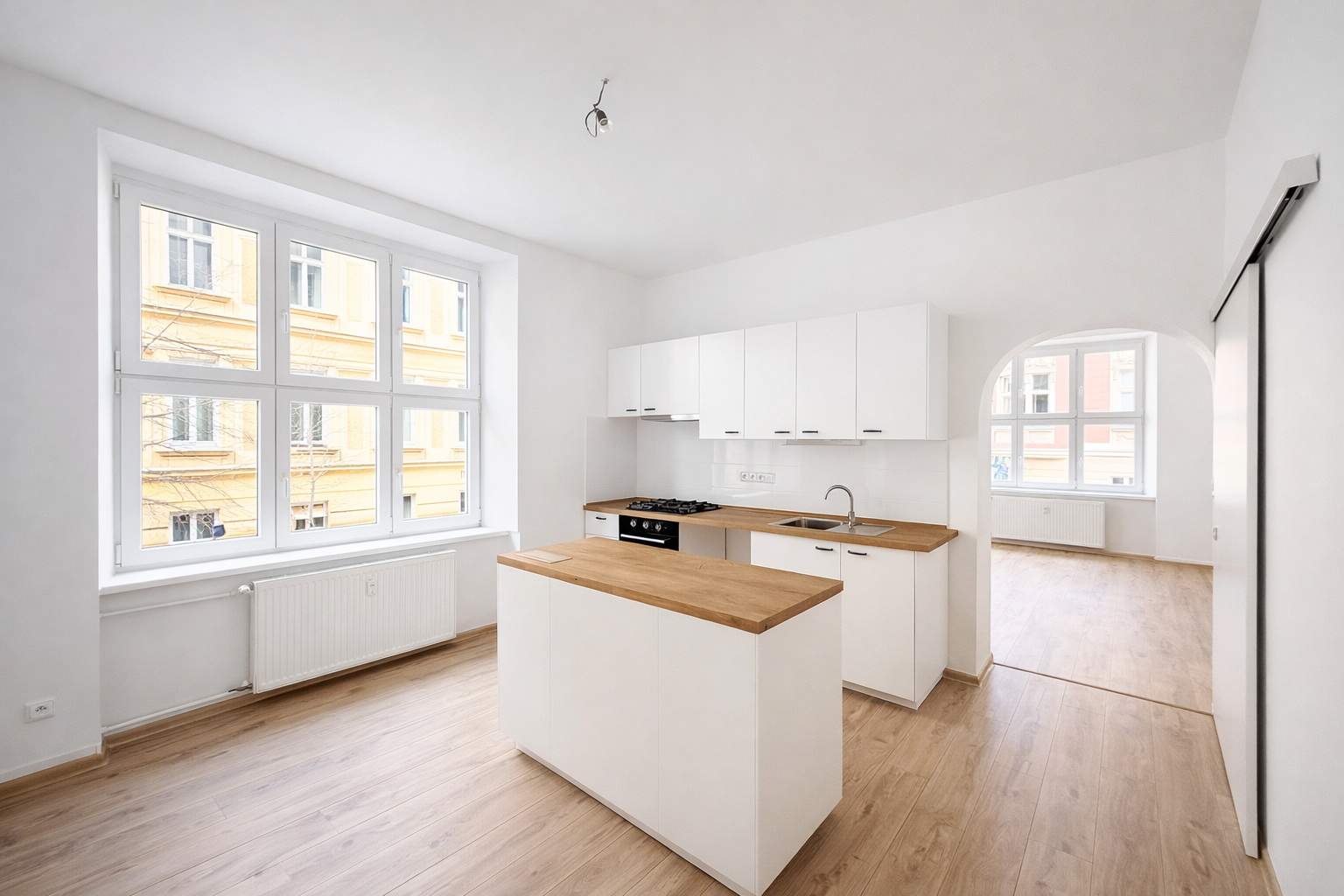 Byt prošel kompletní rekonstrukcí a nabízí moderní a komfortní bydlení. Velkou předností je obývací pokoj s okny orientovanými na dvě světové strany, díky čemuž je krásně prosvětlený po celý den a působí velmi vzdušně.